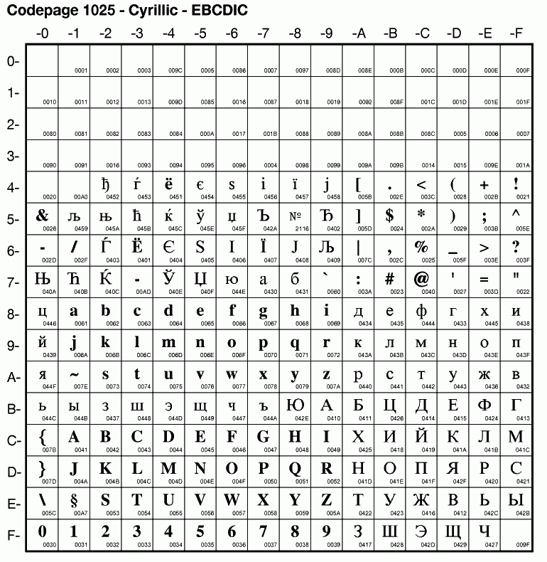 | Cp1025 | IBM-1025 | EBCDIC Cyrillic | ibm1025 | |