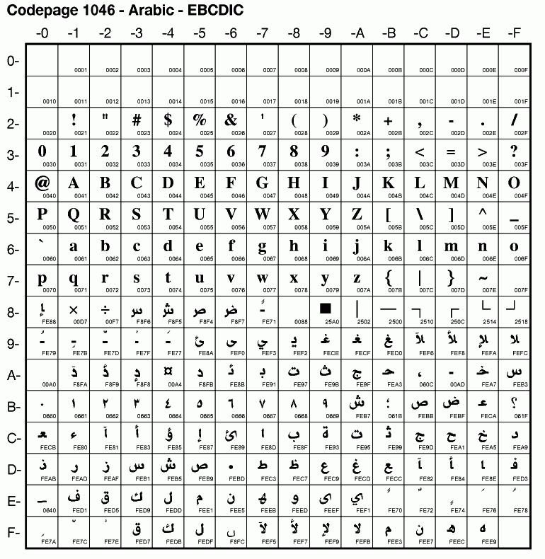 | Cp1046 | IBM-1046 | EBCDIC Arabic | ibm1046 | |