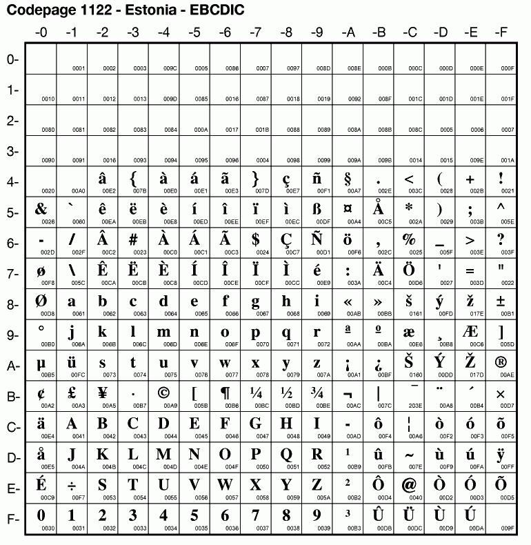 | Cp1122 | IBM-1122 | EBCDIC Estonia | ibm1122 | |