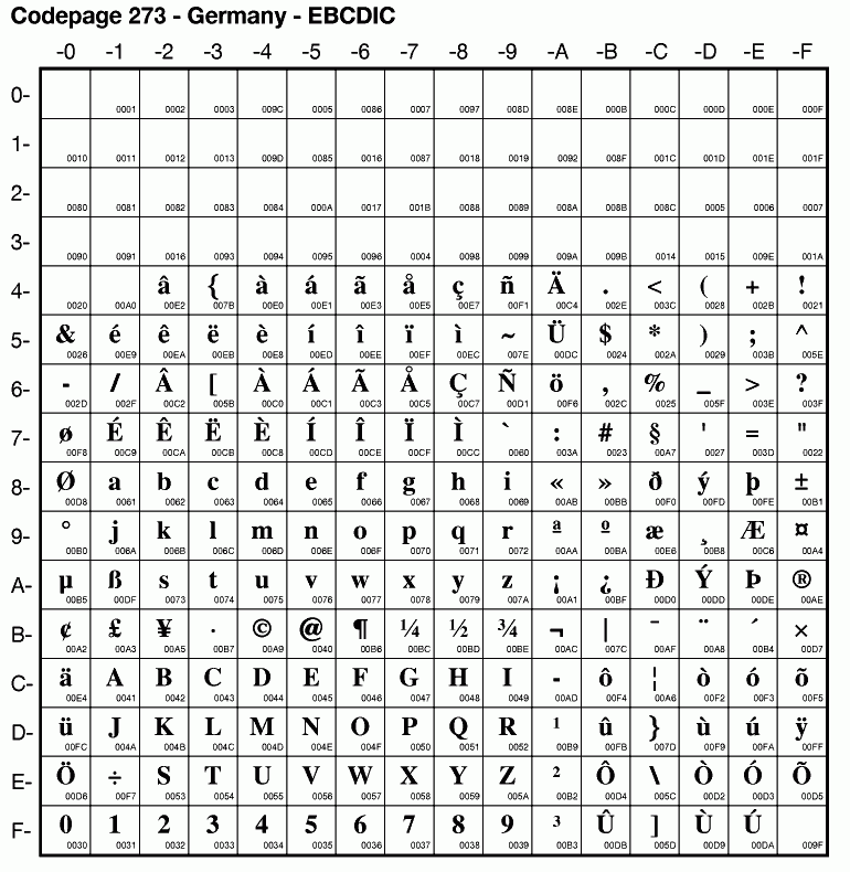 | Cp273 | IBM-273 | EBCDIC Germany | ibm273 | |