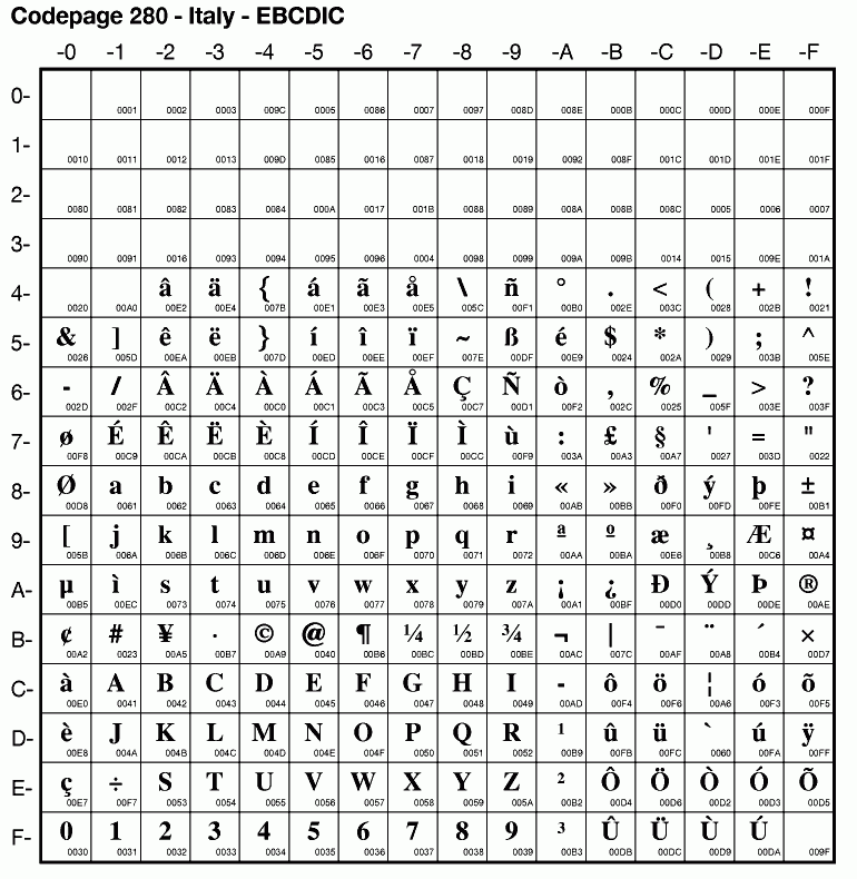 | Cp280 | IBM-280 | EBCDIC Italy | ibm280 | |