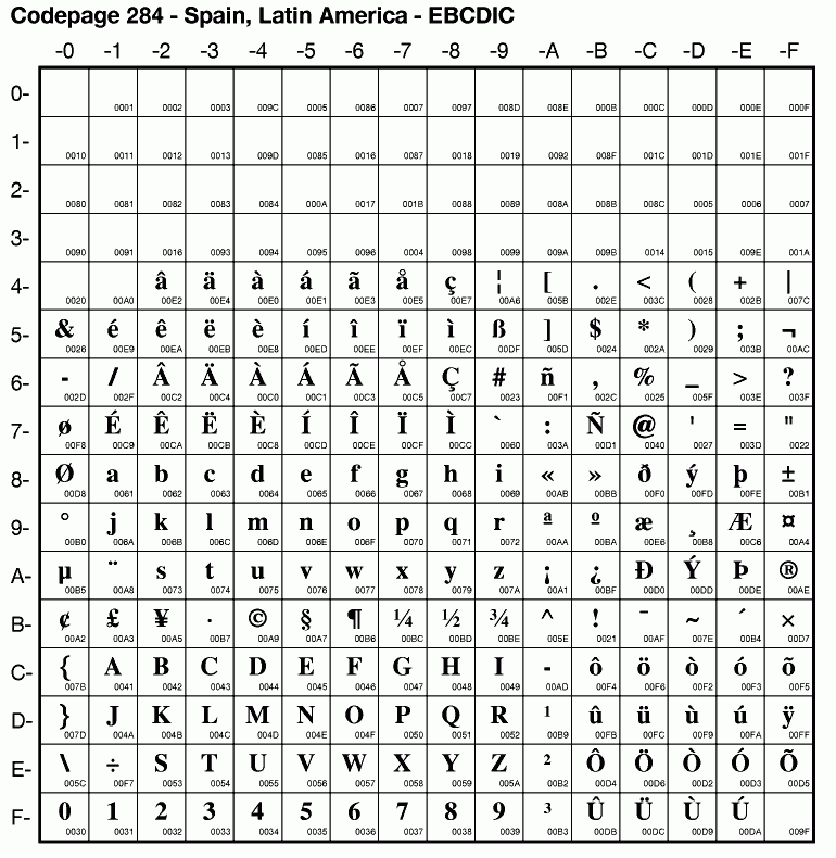 | Cp284 | IBM-284 | EBCDIC Spain, Latin America | ibm284 | |