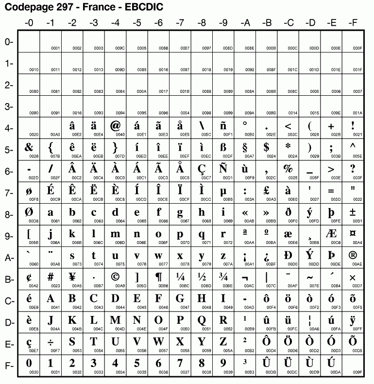| Cp297 | IBM-297 | EBCDIC France | ibm297 | |