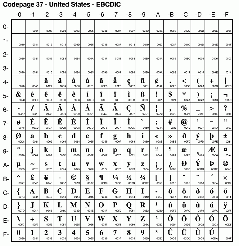 | Cp037 | IBM-037 | EBCDIC United States | ibm037 | |