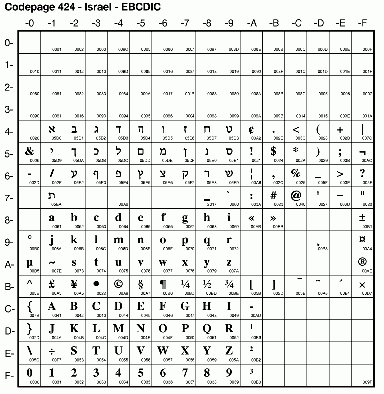 | Cp424 | IBM-424 | EBCDIC Hebrew | ibm424 | |