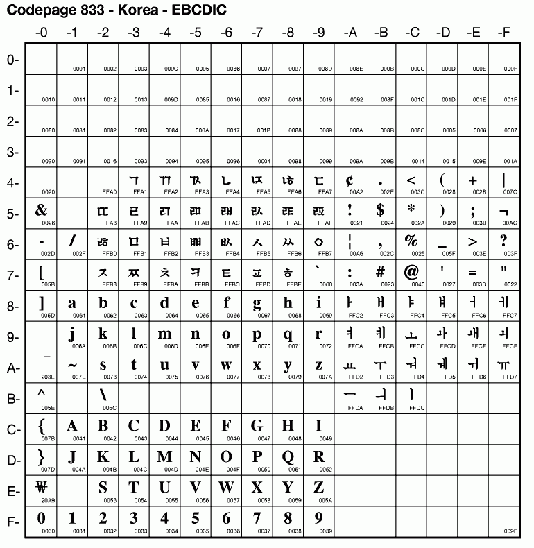 | Cp833 | IBM-833 | EBCDIC SBCS Korean | ibm833 | ibm 1.3 |