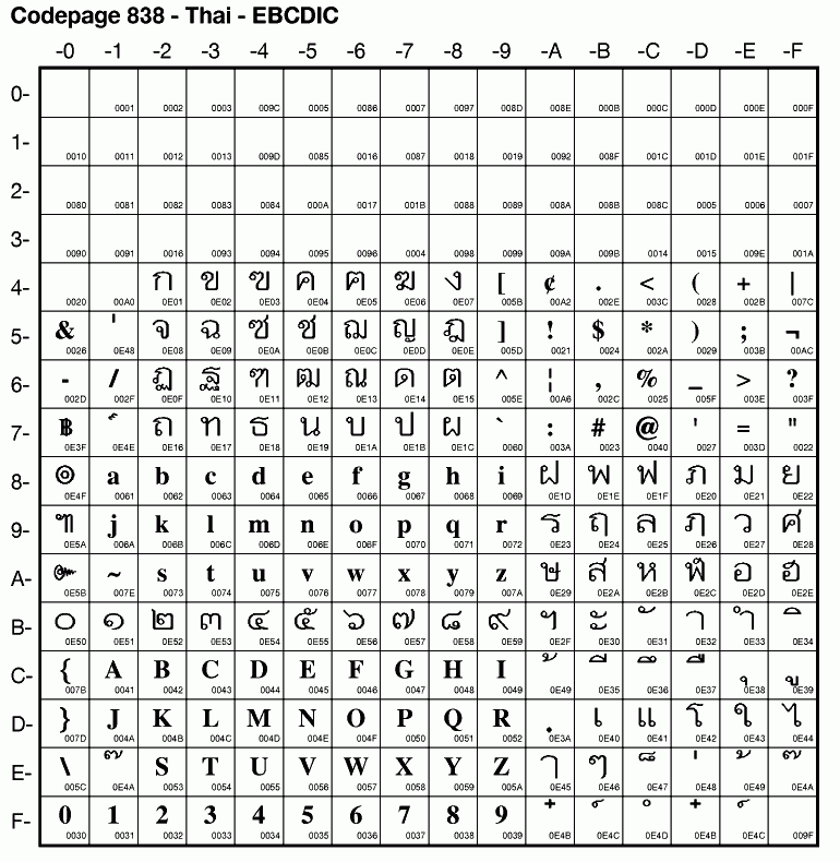 | Cp838 | IBM-838 | EBCDIC Thai | ibm838 | |