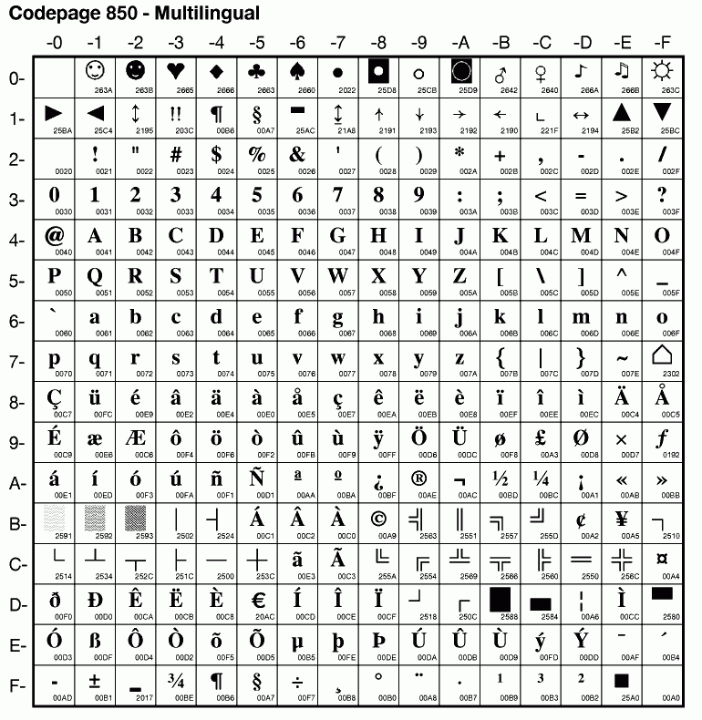 | Cp850 | IBM-850 | PC Latin 1 | cspc850multilingual ibm850 | |