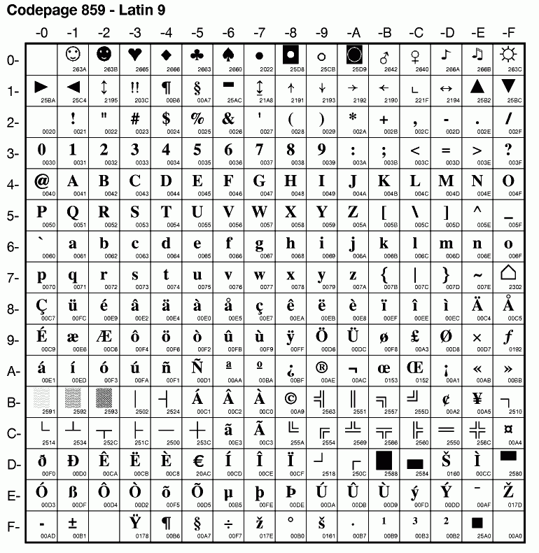 | Cp859 | IBM-859 | PC Latin 9 | ibm859 | ibm 1.2 |