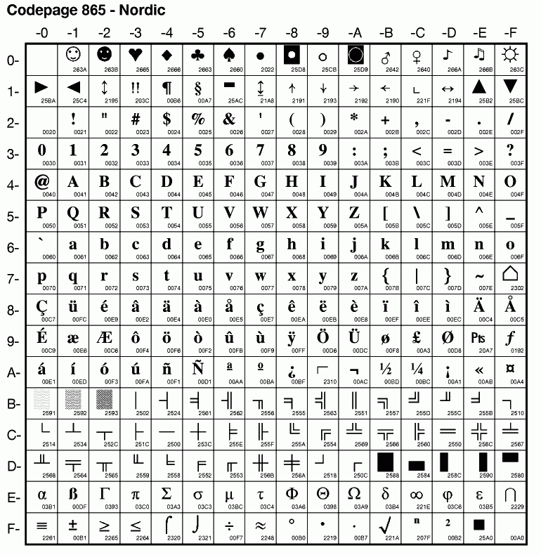 | Cp865 | IBM-865 | PC Nordic | ibm865 | |