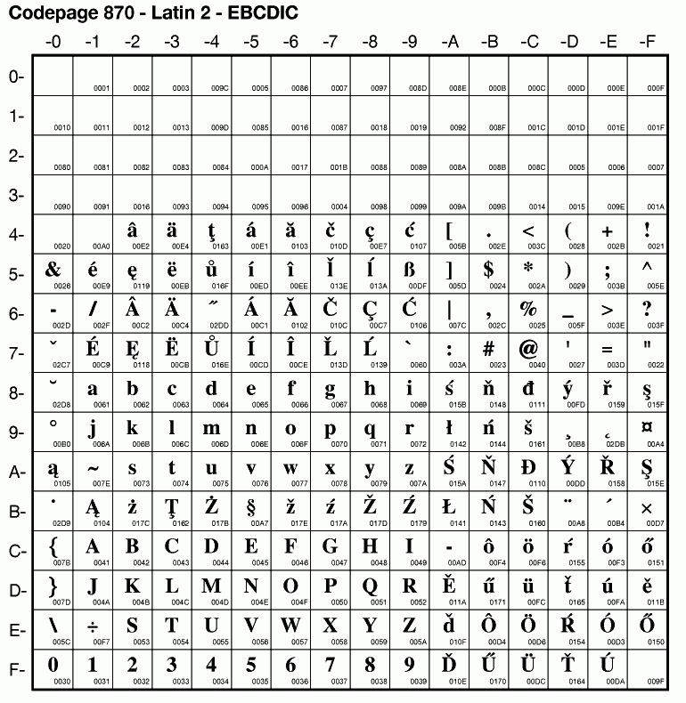 | Cp870 | IBM-870 | EBCDIC Latin 2 | ibm870 | |