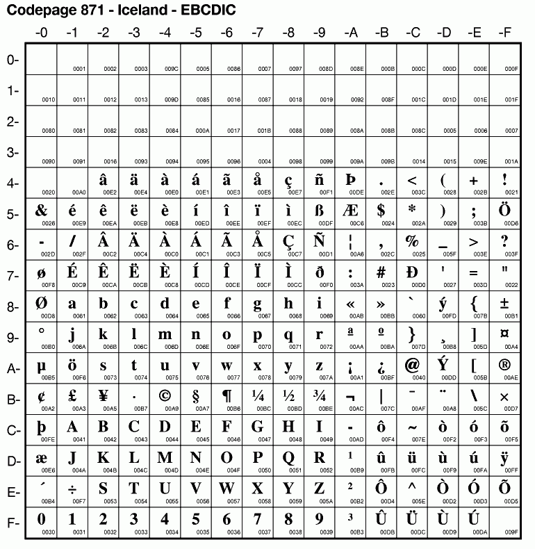 | Cp871 | IBM-871 | EBCDIC Iceland | ibm871 | |