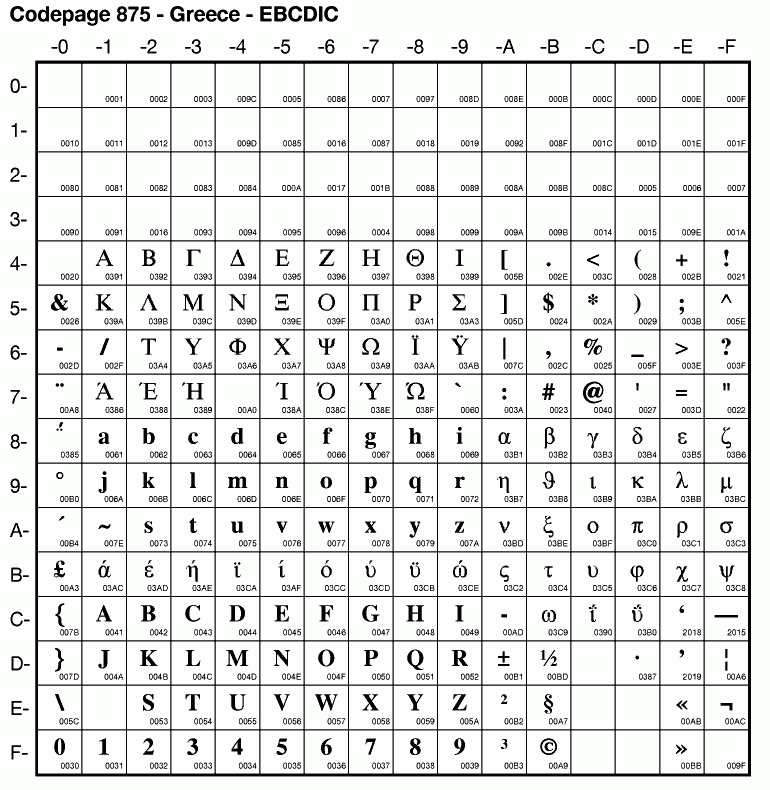 | Cp875 | IBM-875 | EBCDIC Greek | ibm875 | |