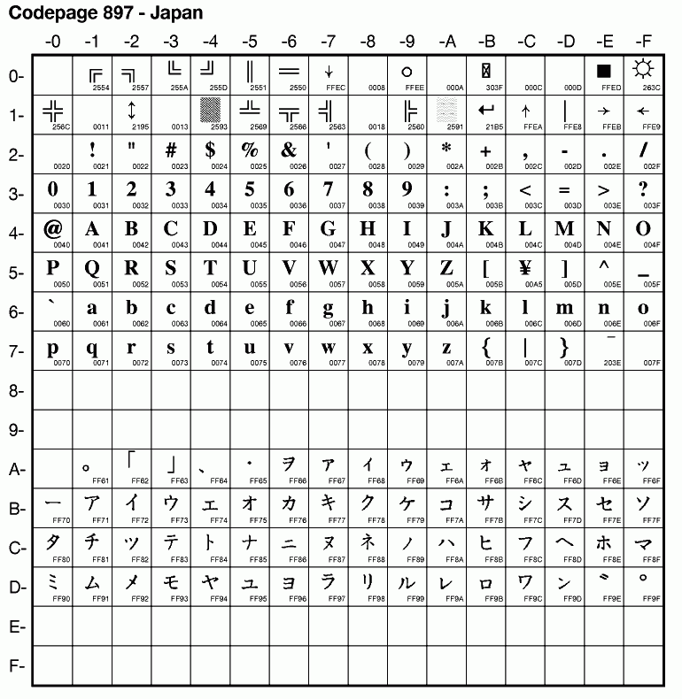 | Cp897 | IBM-897 | PC SBCS-only Japan | ibm897 | ibm 1.3 |