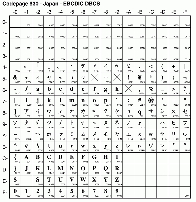 | Cp930 | IBM-930 | EBCDIC Japan DBCS | ibm930 | |