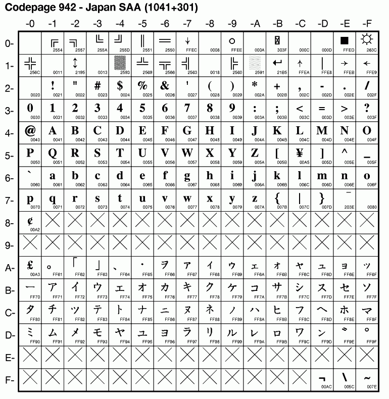 | Cp301 | IBM-301 | PC DBCS-only Japan | ibm301 | ibm 1.3 |
